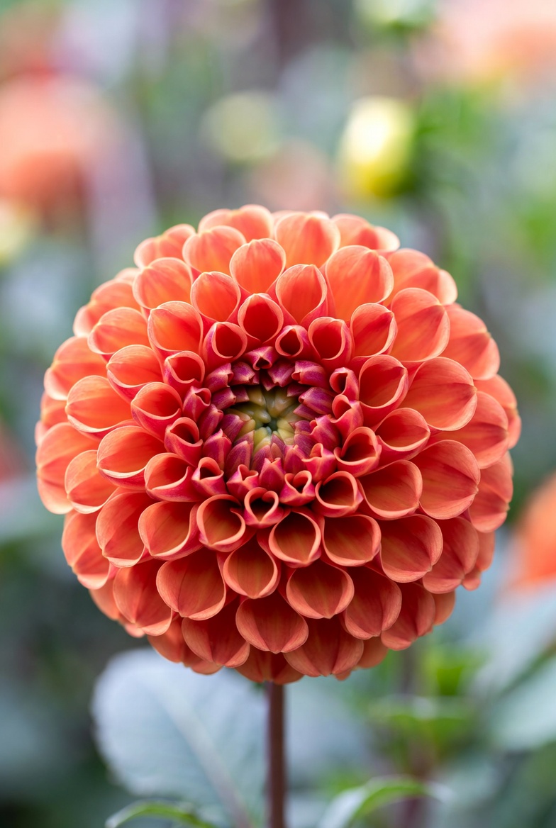 It is classified as a miniature ball type, featuring tightly arranged, inward-curving petals that create a compact, symmetrical, globular flower head with excellent substance and form. The blooms typically measure 2–3.5 inches across (size M/miniature), offering a versatile and manageable size for cutting and arranging.